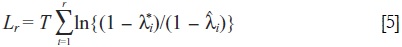donde λ*1, A*2, ..., A*r son los r eigenvalores con mayor magnitud del modelo restringido por las hipótesis (restricciones) y,