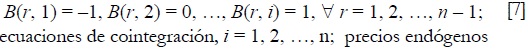 Las condiciones de paridad de los precios (ley del precio único) se contrastan a través de imponer restricciones sobre los parámetros de los vectores de la matriz de coeficientes de cointegración P' mediante la siguiente hipótesis nula: