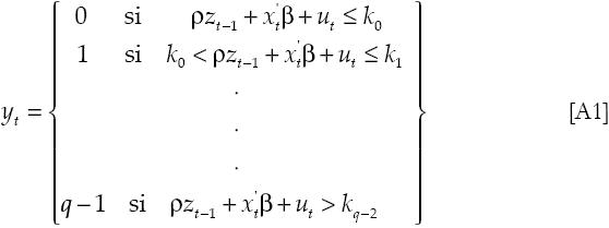 donde zt-1 = f(yt-1, yt-2,..., yt-n) y el error tiene una distribución normal. Sea el verdadero vector un parámetro denotado por: θ0 = (β0', ρ0)', donde β0 ∈ℜ1 y ρ0 ∈ℜ. Sea el espacio del parámetro denotado por: Θ con θ = (β', ρ)'∈Θ. Para escribir la función condicional de verosimilitud en forma concisa, sea: