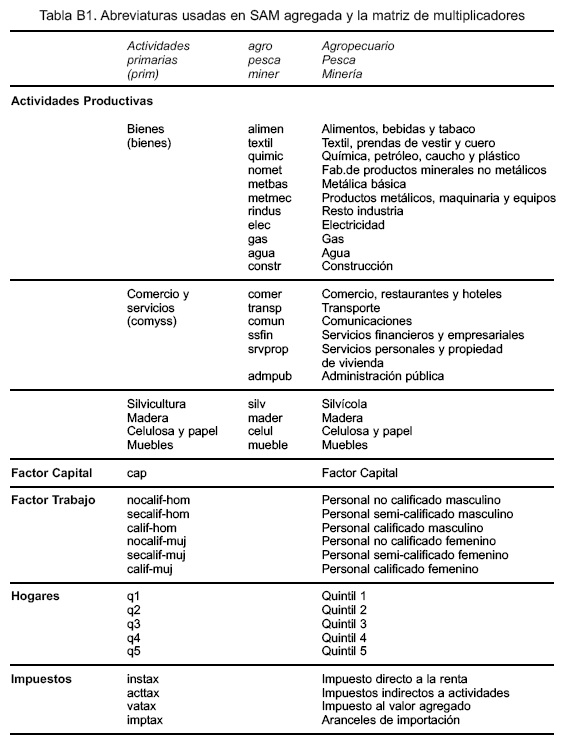 Otras cuentas de la SAM original que fueron desagregadas fue el sector de madera y muebles, electricidad-gas-agua, así como también el factor trabajo que se desagregó por género y nivel de calificación con base en la encuesta CASEN 2006.4