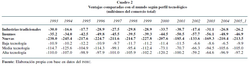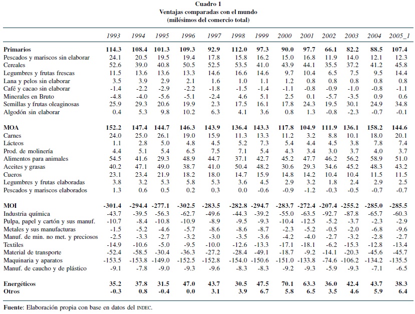Las ventajas comparadas reveladas representan, entonces, balances comerciales sectoriales normalizados, correspondientes a una situación hipotética de equilibrio comercial.14 En este sentido, constituyen un indicador de las ventajas comparadas de la nación.