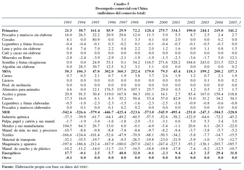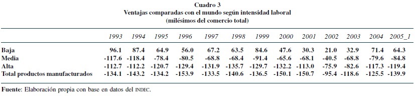 La base de datos utilizada es la del comercio exterior argentino según la Nomenclatura Común del MERCOSUR (NCM) a seis dígitos de desagregación. Esta base fue convertida a la nomenclatura CUCI Rev. 2. La clasificación de intensidad laboral es una versión modificada de la que se encuentra en Bezchinsky et al. (1992). La clasificación de complejidad tecnológica es una versión modificada de la elaborada por la CEPAL (1991). Para un detalle de la clasificación utilizada véase el anexo metodológico de Bekerman y Sirlin (1996).