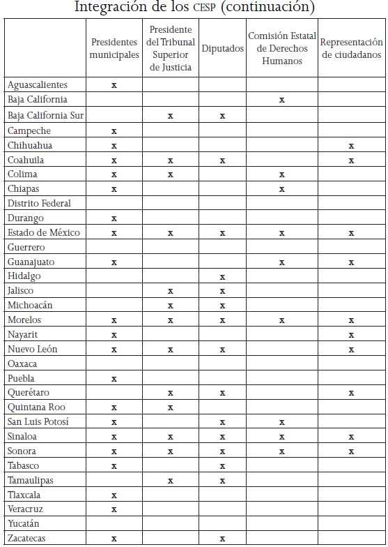 Los CESP integran en todas las entidades federativas a los siguientes funcionarios: