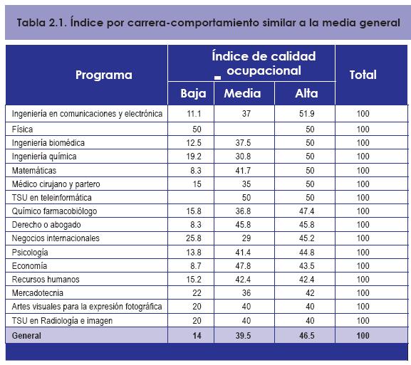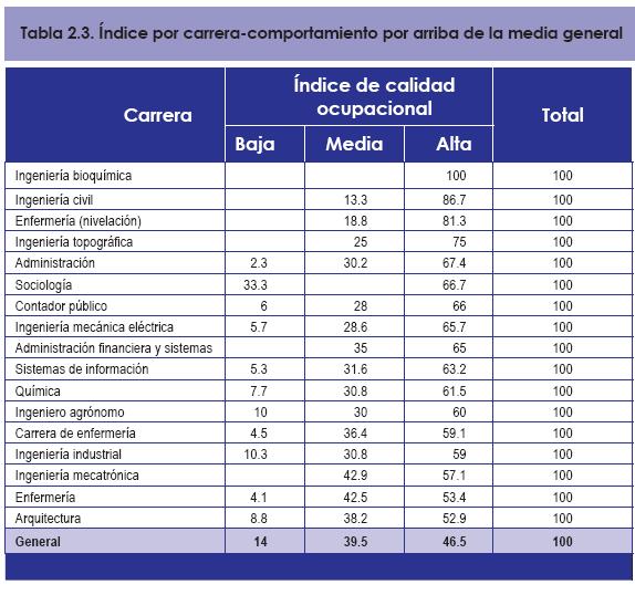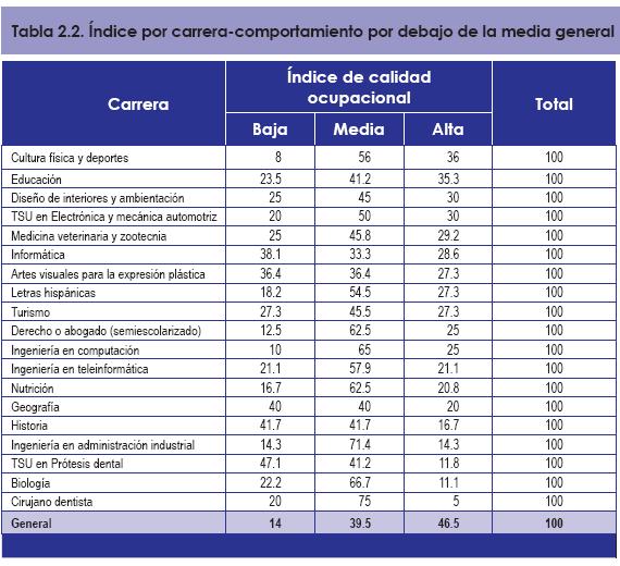 Anexo 2. Índice de calidad de la ocupación por carrera