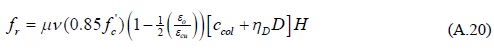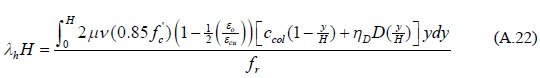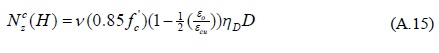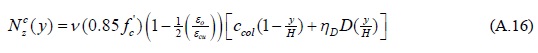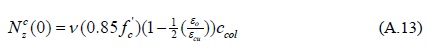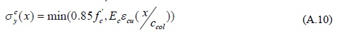 donde ccol es la profundidad del eje neutro en la base de la columna del extremo en compresión, el parámetro x varía entre 0 y ccol. La deformación del límite elástico, ε0, para el concreto se define igual a 0.85f'c/Ec