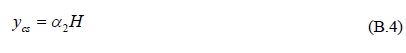 La ubicación respecto del borde superior, ycs, de la fuerza resultante en dicho borde de la cimentación, Cs, considerando la distribución de esfuerzos indicado en la figura B.1, se puede calcular en función de una fracción α2 de la altura H, mediante la siguiente expresión.