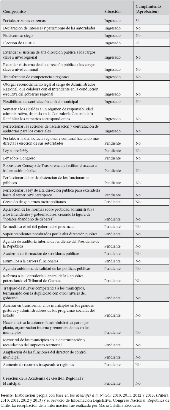 Reformas sobre modernización del Estado y gestión pública presentadas por el gobierno desde marzo del 2010 y su grado de avance hasta el año 2013: