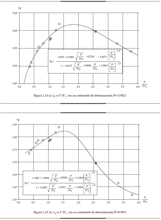 Apéndice III. Variación de los parámetros de la rama descendente de la cresta del vertedor de abanico, en función de la altura relativa P'/H'0