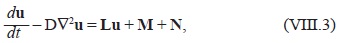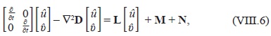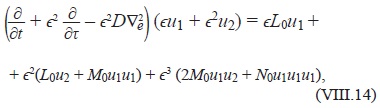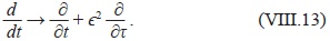 Considerando que los eigenvalores de L en la expresión VIII.8a contienen una pequeña contribución de orden ε2, es apropiado introducir una nueva escala de tiempo τ = ε2τ . Correspondientemente, la diferenciación en (VIII.5) debe ser separada como:
