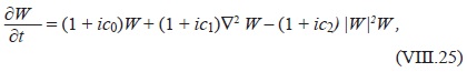 que se conoce como la ecuación de Landau Ginzburg con coeficientes complejos. Nuestro interés es obtener los valores de los parámetros c0, c1 y c2 para nuestro modelo BVAM. Normalizando con σ1, de (VIII.23) obtenemos el valor del parámetro c0