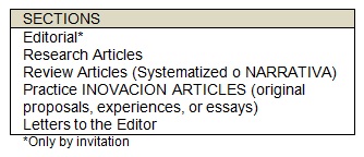 These are derived from the analysis of the results and purpose of the study. Highlight the new and relevant aspects, as well as the explanation to the findings. Compare the results with those of other similar studies, and how this contributes to the knowledge of nursing. Affirmations should be fully supported by the data. The study limitations must be included. For qualitative studies, it is important to establish the pertinent theoretical connections. Articles of systematized review: At least one person with previous experience on the topic must participate. The structure includes: Introduction (with the explicit objective), Methods, clarify the universe which covers the review in relation to periods and consulted databases, and also selection criteria; Results and Conclusions, here, the contribution of the review in aspects of the practice o new research elements, must contain at least 40 bibliographic sources. Boxes and figures can be included. Practice innovation: a maximum of 40 pages for any form: - Original or innovative proposals to the practice. Include the context of the information, in other words, where does it emerge, and to who it is directed to. This is information to which it refers (norms, procedures, agreements, and guidelines, etcetera) as well as information sources. - Practice experiences. Introduction, strategies, experiences, interventions, care plans (if it is the case), results, conclusions, references; at least 5 published articles which are related to the topic. - Essays Introduction, development, conclusions and references; those necessary to support the arguments and thesis proposed in the work, preferably published in the last five years. Letters to the editor: the extension will be 2 pages maximum. 5. Funding, Conflict of Interests, and Greetings: Each article must ALLWAYS contain a section for clarifications at the end of the text, previous to the references list, using the following categories: Funding (compulsory): if there is none, the word "None" must be included. Conflict of interests (compulsory): if there is none, the following phrase must be included: "Authors declare that they do not have any conflict of interest at all" 6. References They should strictly follow the Vancouver model, used by the majority of the biomedical journals. Bibliographic references are numbered consecutively in the order in which they appear for the first time in the text, they should be placed in Arabic numbers in superscript and without parentheses. The numbers assigned must be converted in unique identifiers of that source, and they are re-used each time the reference is cited along the text. Here are some examples: Journal articles: i) Last name(s) and initial(s) of the authors, maximum six, and if there are more, add the legend et al. (period), ii) Title of the article (period). iii) Name of the journal abbreviated, iv) year (semicolon), v) volume, vi) number between parentheses (colon), vii) initial and final page of the article separated by a GUIÓN, and when it is only one page, add at the end "just one page". Example: Barraza-Villarreal A, Sanín-Aguirre LH, Tellez-Rojo MM, Lacasaña- Navarro M, Romieu I. Prevalencia de asma y otras enfermedades alérgicas en niños escolares. Salud Pública Méx 2001; 43(5):433-443. Books: i) Last name(s) and initial(s) of the first three authors, if there are more, add the legend et al. (period), ii) title and sub-title (period), iii) edition (if it is not the first), iv) city of publication (colon), editorial (semicolon), year of publication (period), page if it is necessary. Examples: Burke MM y Walsh MB. Gerontológica: cuidados integrales del adulto mayor. 2ª ed. Madrid: Harcourt Brace; 2000. p.650. Schön D. La formación de profesionales reflexivos: Hacia un nuevo diseño de la Enseñanza y el Aprendizaje en las profesiones. Barcelona: Paidós; 1992. Book Chapter: i) Last name(s) and initial(s) of the first three authors, if there are more, add the legend: et al. (period), ii) title of the chapter (period), iii) in: Editors, Coordinators or book RECOPILADORES, iv) Title of the book, v) Number of edition, vi) City of publication (colon), vii) Editorial; viii) year of publication, ix) Initial and final pages corresponding to the chapter and separated by a GUION Example: Stern C, Menkes C. Embarazo adolescente y estratificación social. En: Lerner S y Szasz I. Salud reproductiva y condiciones de vida en México. México: El Colegio de México; 2008. P. 347-396. For international journal title short forms consult: http://1.usa.gov/mHKV2x or http://bit.ly/HWbYnP Article in journal in Internet i) Last name(s) and initial(s) of the authors, maximum six, if there are more, add the legend et al. (period), ii) title of the article, 111) name of the journal in short form [Internet], iv) year [date of consultation (semicolon), v) volume, vi9 number between parentheses (colon), vii pages, ix) available in: article's URL. Example: Alconero AR, Casaus M, Iglesias R, De la Friera V, Noriega MJ, Fadón A. El corazón de los jóvenes. Enferm Cardiol [Internet]. 2006 [consulta 23 marzo 2008]; 13 (38): 13-18. Disponible en: http://bit.ly/NYsbYe Ailinger RL, Nájera RM, Castrillón MC, Manfredi M. Nursing Research in latin America: 1988-1998. Rev Lat Am Enfermagen [internet] 2005; 13 (6): 926-928 [consulta 12 Enero 2011].Disponible en: http://bit.ly/17TD7EZ For more information, it is suggested to consult the uniformity requirements for writings for bio-medical journals: http://bit.ly/HTQQcW 7. Tables and figures While designing boxes, tables, and figures (drawings, graphs, photographs, etc.) you must consider a possible size reduction. Boxes and figures titles should be understood without a reference to the text. These are identified with Arabic numbers according to the corresponding global sequence. Tables, boxes, and figures should be shown in the order in which they are referenced in the work (Table 2; Figure 4), in separate pages, and gra