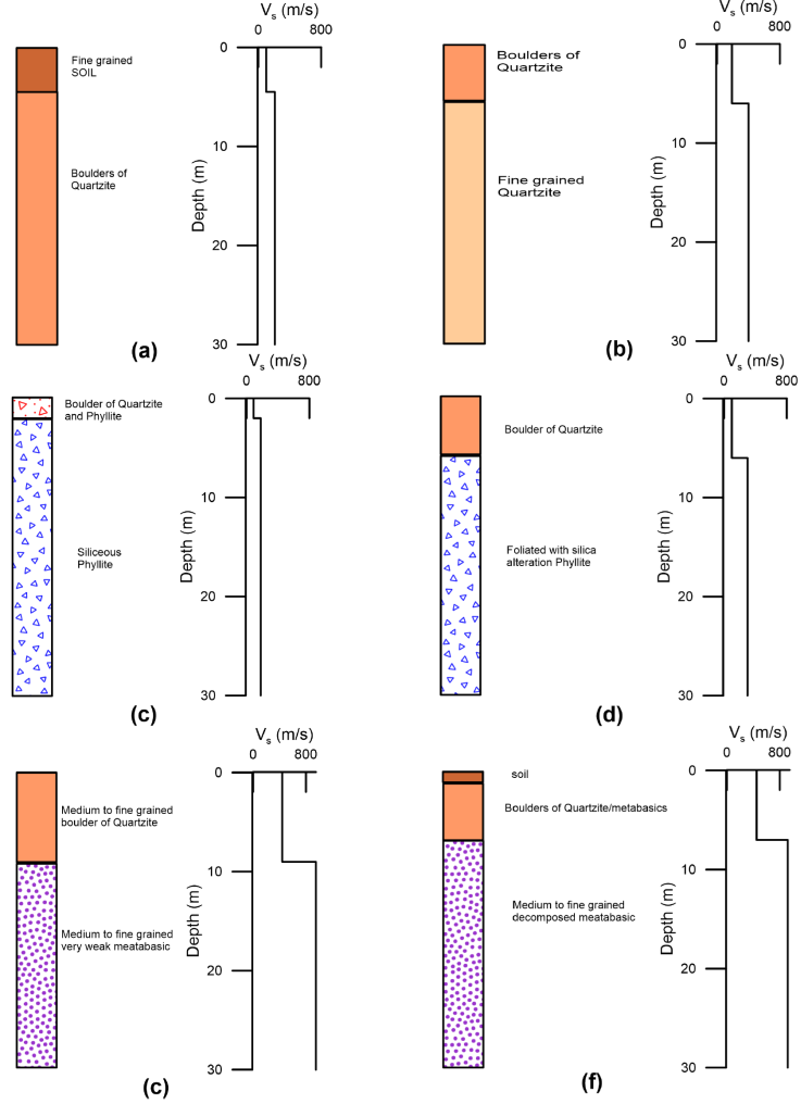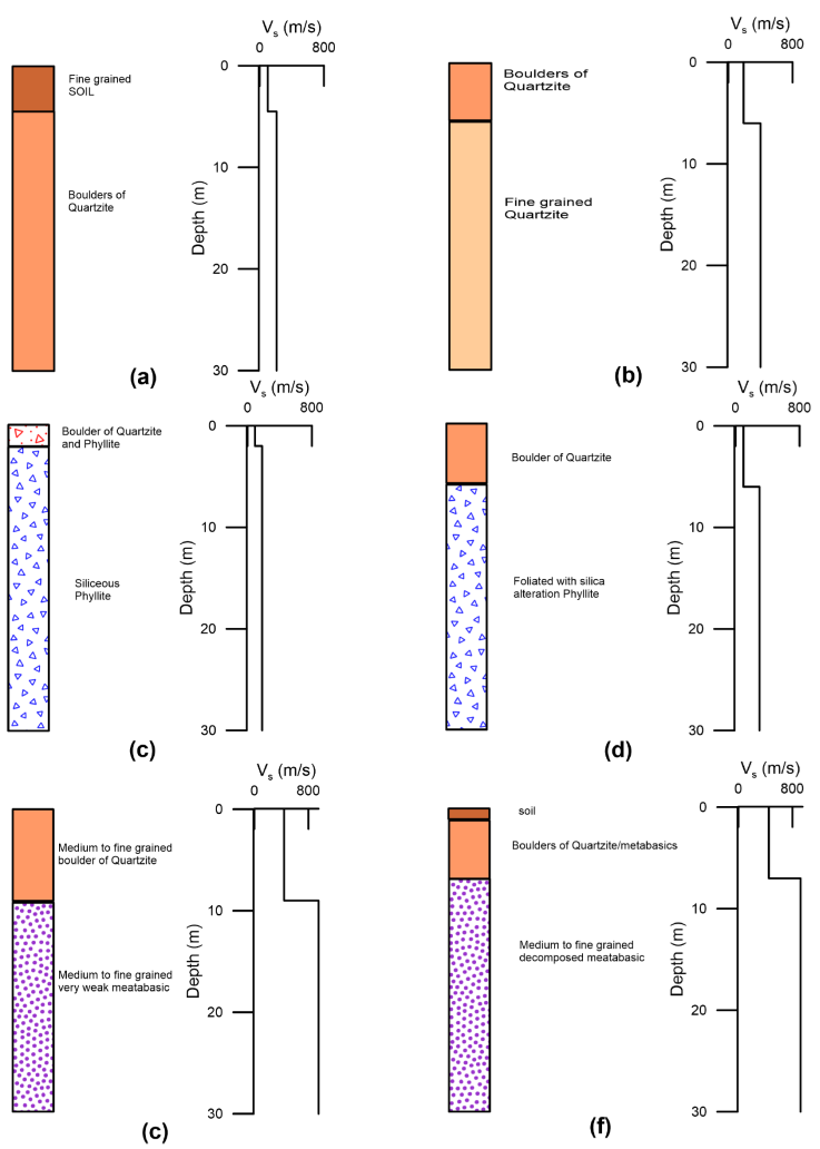Table 1 Relation between shear wave velocity and depth for different lithological units in the Garhwal Himalayas within the depth of thirty meters