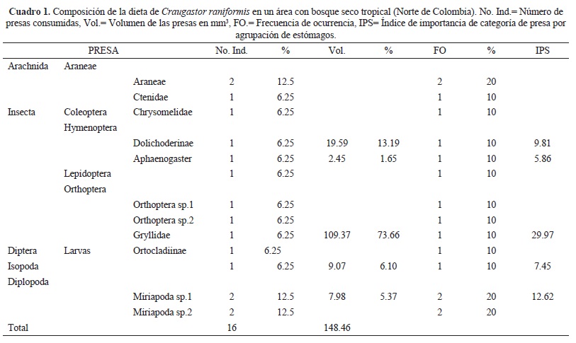 Dieta de Craugastor raniformis Boulenger (Anura: Craugastoridae) en un área con bosque seco tropical del norte de Colombia