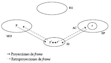 32 No hemos podido encontrar una traducción exacta de este término, propuesto por la teoría de Fauconnier en la obra Mappings... (1997). Esto quiere decir simplemente que existe una conexión entre las dos entidades mentales, cuyos frames son también puestos en correspondencia.