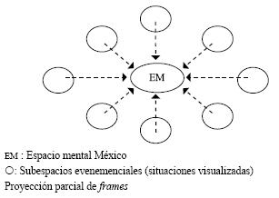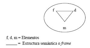 Cada uno de estos espacios mentales posee elementos y relaciones entre ellos, conocidas con el nombre de frames o estructuras semánticas,13 pues definen o estructuran las relaciones entre dichos elementos:14