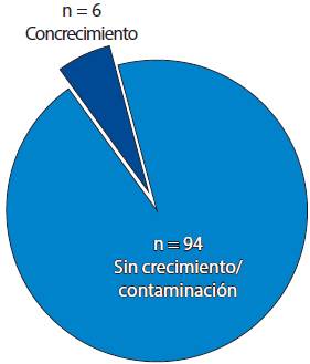 Figura 2 Resultados del desarrollo de cultivos celulares en 100 muestras de orina de individuos nefrópatas.