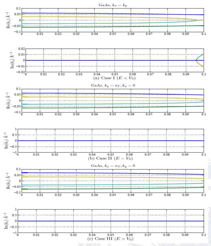 Fig.5 shows the graphs for the real <(κZ) and imaginary =(κZ) parts of the geometric place of the roots κZ of the QEP for the cases where E < V0 , E ∼ V0 , and E > V0 , considering the effect of the bandmixing of holes, using the Hu and Hl Hamiltonians.