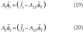 al resolver los sistemas de ecuaciones asociados con los subdominios Ω1 y Ω2, ubicados en los renglones 1 y 2, respectivamente, del sistema (15):