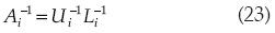 pueden calcularse a través de la factorización LU, obteniéndose la matriz inversa de la forma: