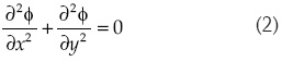 La ecuación (2) es la ecuación de Laplace para el potencial de velocidad. Otra manera de analizar el flujo con potencial es la función de corriente, ψ, la cual se relaciona con Φ a través de las condiciones de Cauchy-Riemann (Grenger, 1995). Este parámetro satisface también la ecuación de Laplace: