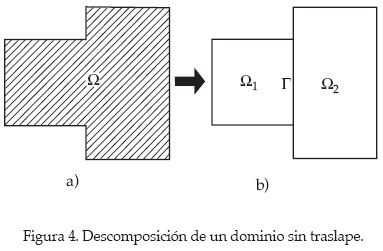 Estas técnicas se dividen en dos categorías: las primeras son denominadas técnicas con traslape, y las segundas, sin traslape. Las técnicas con traslape se aplican para resolver los sistemas de ecuaciones generados al segmentar un dominio Ω en múltiples subdominios Ωi traslapados entre sí; mientras que las técnicas sin traslape se emplean cuando el dominio se divide en múltiples subdominios, cuya única conexión es a través de una interfaz Γ, tal como se indica en la figura 4.