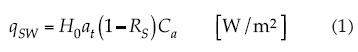 Donde qSW es la radiación de onda corta medida; H0, la radiación solar que llega a la atmosfera; at, la atenuación atmosférica; RS, el albedo, y Ca es la fracción de radiación solar no absorbida por las nubes.