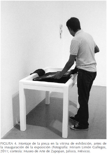Para ejemplificar el sistema de diálogo planteado, aquí se expone el caso de la intervención de la pieza denominada Chamarra/retrato de Javier Campos Cabello, la cual requirió intervención de restauración durante su montaje de la exhibición Martha Pacheco. Exposición antológica, celebrada en el Museo de Arte de Zapopan (MAZ), dependiente de Ayuntamiento de la Ciudad de Zapopan, Jalisco (México) en septiembre del 2011. Debido a que se trataba de un óleo pintado sobre una prenda de vestir, mismo que poseía una capa de preparación de gesso comercial muy delgada, la manipulación de la pieza como objeto de arte generó problemas de adherencia en sus estratos pictóricos a lo largo del tiempo, manifestados en desprendimientos y craqueladuras. Así surgieron cuestionamientos respecto de su conservación y se planteó la posibilidad de intervención previa a su incorporación a la citada exposición.