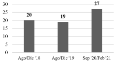 | 2018, 2019 y 2020-2021 | Con metodología | 85.12 | 88 |