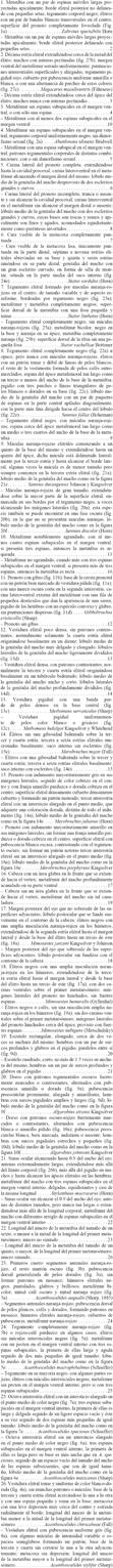 La compaginación de los datos antes mencionados se enlista a continuación, para cada una de las especies y en orden filogenético: