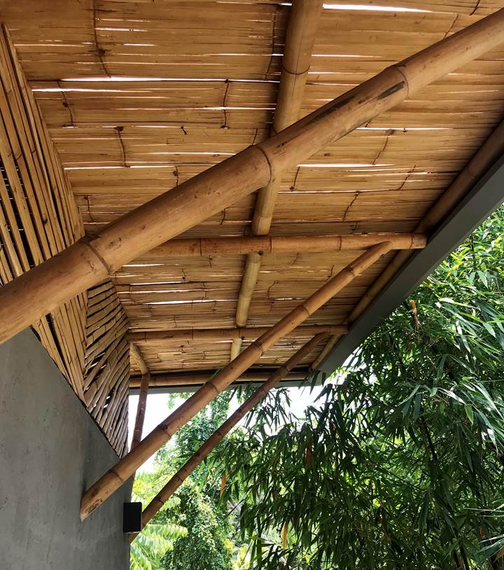 Figura 6: Plafón de esterilla y soportes hechos con Bambusa oldhamii Munro en estructura de carga. Hotel Gran Tamoanchan, Xolol, San Luis Potosí, México.