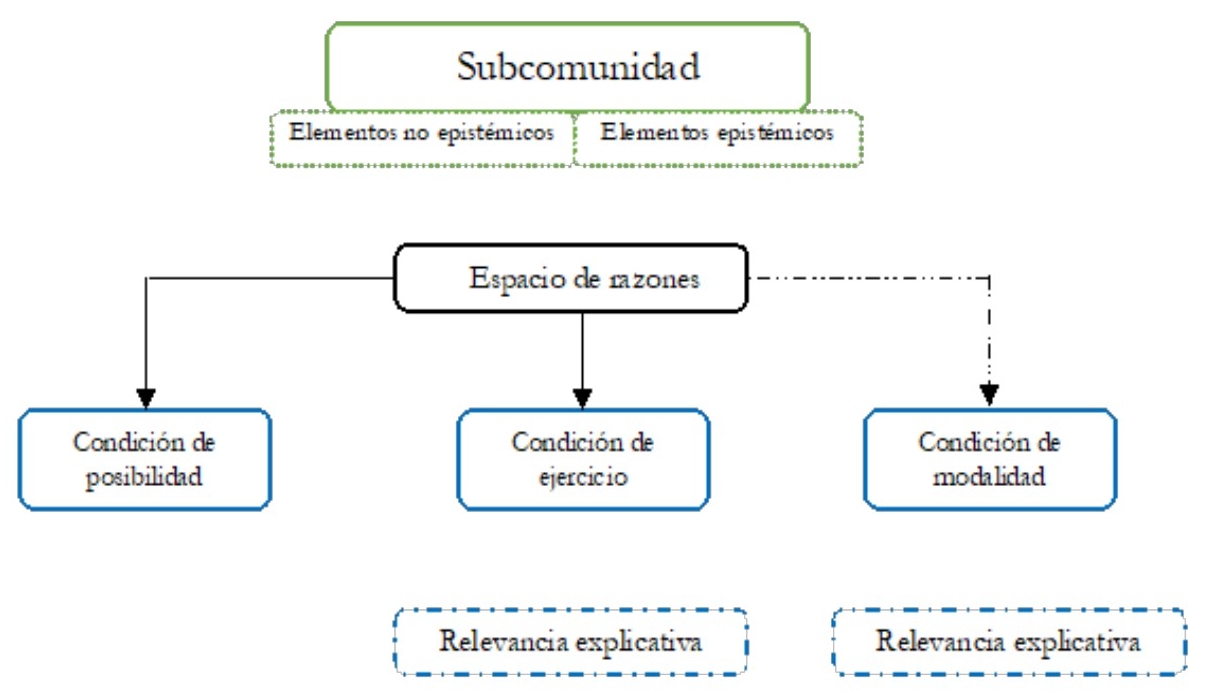 La noción de “comprensión” propuesta depende de unas condiciones materiales y epistémicas muy concretas. Depende de una subcomunidad particular de agentes cognitivos. Las condiciones de posibilidad, de ejercicio y de modalidad de la comprensión tienen lugar, por tanto, en un entorno de investigación complejo compuesto por una variedad de elementos epistémicos y no epistémicos; en otras palabras, las subcomunidades se hallan estructuradas por unos elementos epistémicos -teóricos y performativos-16 y no epistémicos -estructuras sociales de organización y distribución del conocimiento-muy particulares y concretos que determinan los contornos materiales de la comprensión científica.17 Son estos elementos los que establecen qué se considera epistémicamente válido (condición de posibilidad), significativo (condición de ejercicio) y posible (condición de modalidad). Grosso modo, la condición de posibilidad apunta a la idea de que, para tener la posibilidad de adquirir comprensión, los agentes cognitivos tienen que instruirse, reconocer, anclarse y responder de manera dialógica a los elementos epistémicos que delinean los contornos de la subcomunidad. El agente debe ser capaz, por tanto, de articular de manera conceptual los aspectos cognitivamente significativos marcados por la subcomunidad en cuestión. Debe tener la capacidad de saber cómo hacer inteligible un cuerpo de creencias ya instituido, de poder emplazar los aspectos considerados como significativos dentro del correspondiente espacio de razones de la subcomunidad en cuestión (Brandom, 2005; Martín-Villuendas, 2021a; Sellars, 1997). La condición de ejercicio está destinada a reseñar las posibilidades de investigación o los objetivos cognitivos significativos establecidos por la subcomunidad, objetivos por los que los agentes en su conjunto trabajan para lograr articular una mayor inteligibilidad del dominio de investigación. Esta condición es esencialmente normativa dado que exige que el agente sea capaz de ofrecer a los demás agentes cognitivos las razones correspondientes que justifican sus afirmaciones -el juego de dar y pedir razones (Brandom, 2005)-. La condición de modalidad está destinada a reseñar el carácter dinámico y perfectible de la comprensión, así como la flexibilidad de los contornos que delimitan a las diversas subcomunidades de investigación (Longino, 2002). Esta condición establece que los agentes cognitivos deben ser capaces de explorar qué es posible y qué no lo es dentro del correspondiente espacio de razones de la subcomunidad. Es decir, establece que los agentes cognitivos deben ser capaces de explorar un espacio heurístico de posibilidades que permita hacer significativos nuevos aspectos del fenómeno en cuestión.