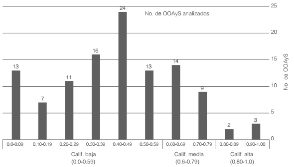 Debido al tamaño de la muestra de OOAyS, en la Tabla 4 se destacan los cinco con los mejores resultados en la escala de calificación.