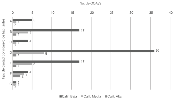 Tabla 6 Distribución en valor absoluto y relativo del número de OOAyS por tamaño de ciudad y calificación