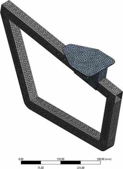 Initially, the entire geometry was meshed. After performing several analyses without achieving convergence due to the complexity of the model, it was decided to analyze the parts in isolation. These were mainly areas that were perceived as critical in this first numerical approximation. Two substructures were evaluated; the saddle support bar structure (Figure 19) and the back support bar structure (Figure 20).