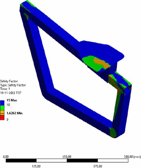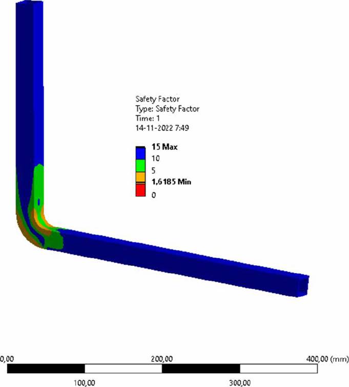 Figures 27 and 28 show both structures, but this time with a distribution of safety factor values. The minimum safety factor read was 1.63, thus meeting the minimum established in the design specifications (Table 1) of 1.5.
