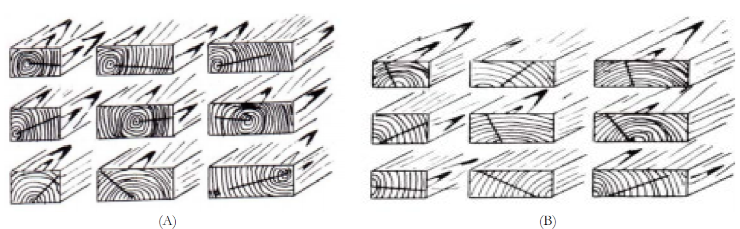 O sentido de quantificação dos anéis de crescimento foi obtido conforme a Figura 1, atentando para a presença ou não da medula, conforme estipulado por instrumento normativo que estabelece os princípios básicos da classificação visual da madeira, descrito em D245 - 06 (ASTM, 2019).