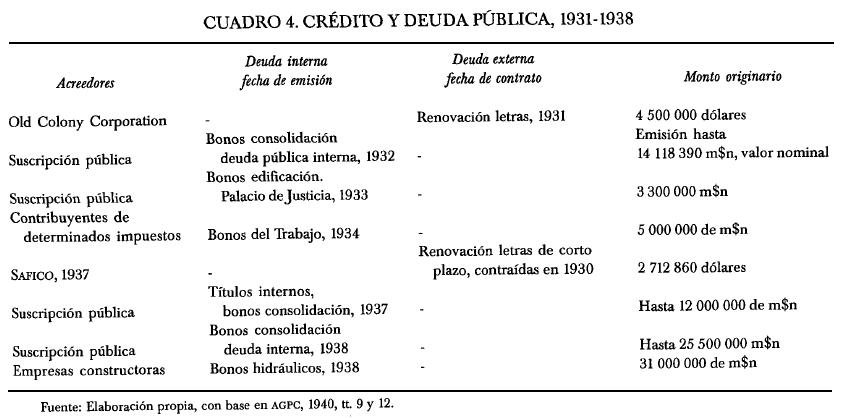 En consecuencia, la deuda de arrastre incidió en el presupuesto de 1928. Aunque se contaba con un potencial aumento de los ingresos fiscales, las obligaciones efectivas en realidad fueron mayores que las del periodo anterior porque las obras públicas contratadas y en realización en 1927 debieron abonarse durante el siguiente ejercicio, en virtud de la vigencia de los créditos abiertos asignados a esas obras. Igualmente se atendieron obligaciones financieras contraídas previamente. El déficit se entiende al comprobar que los ingresos correspondientes a 1928 sumaron 29 876 082 m$n pero los egresos alcanzaron 32 781 013 m$n, con el agravante de un saldo a pagar pendiente de 3 404 921 pesos moneda nacional.48