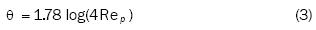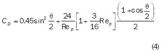 La explicación física de esta tendencia a disminuir ωs con el aumento de Ref responde al aumento de la componente vertical velocidad fluctuante. Para cuantificar este efecto, se utilizó la expresión propuesta por Dou (1963), la cual considera el aumento de la zona de separación de flujo en la estela de la partícula a medida que aumenta Rep. El referido autor define el ángulo de separación θ en la estela de una partícula esférica con la ecuación