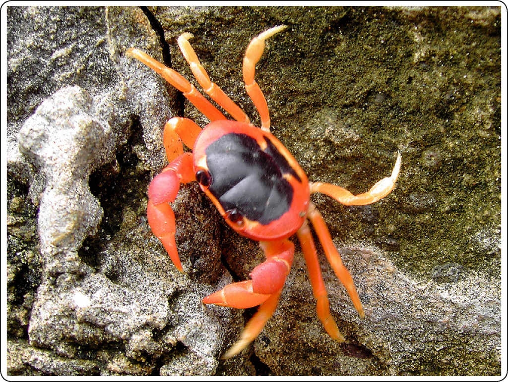 Gecarcinus lateralis (Freminville, 1835). Es un habitante común de pastizales y vegetación a lo largo de las zonas costeras, no muy alejados del mar, al cual regresan al momento de llegar la época de reproducción. Su color es marrón, con la región dorsal del caparazón generalmente negra. Las patas ambulatorias son marrón claro con las quelas rojizas, llegan a medir, aproximadamente, 60 mm de ancho y debido a su abundancia en algunos lugares son utilizados, muy probablemente, desde la época prehispánica en la alimentación humana. La distribución del cangrejo rojo es desde la región norteña de la costa del Golfo de México, y llega hasta Yucatán y costas de Quintana Roo[9].