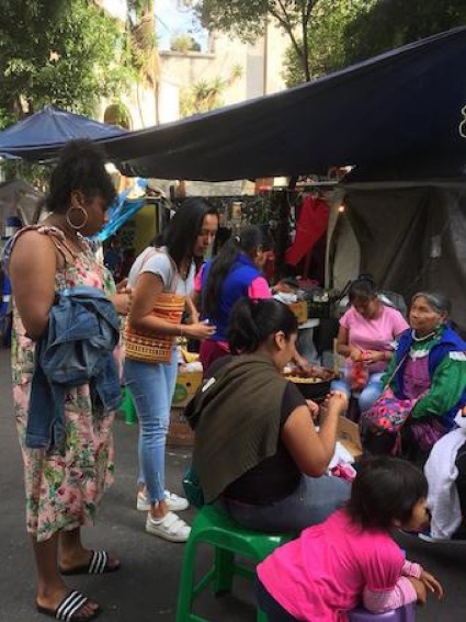 La reunión fue poderosa y conmovedora […] fuimos a visitar a las personas otomíes que fueron desalojadas de su edificio que vivían y ahora duermen en las calles. Se estima que 70 familias y cerca de 100 niños sin hogar. Algunos fueron heridos muy mal por la policía. Vi a una anciana con la mano hinchada al doble de su tamaño. Ella fue golpeada […]. La brecha entre los pobres y los ricos aquí es muy grande, es obscena. El contraste de las personas que caminan con sus perros de raza con sus ropas caras en contraste con las personas que no tienen lugar junto a ellos […]. El tratamiento de estas personas es inhumano, me revuelve el estómago y me lloran los ojos (7 de diciembre, 2018).