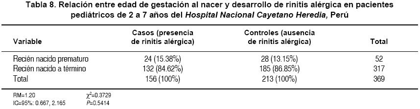 Palabras clave: rinitis alérgica, lactancia materna, prematuridad, bajo peso al nacer.