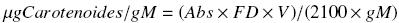Abs: Absorbancia de la solución de hexano a 470 nm.