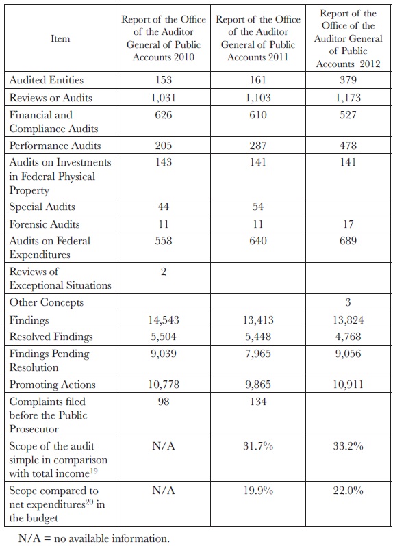 As seen, there is an oversight body with the authority to audit revenues and expenditures; the handling, custody and use of funds and resources by the three branches of power and federal public entities; and the compliance of the objectives set forth in federal programs, among its many functions associated with proper administrative management.