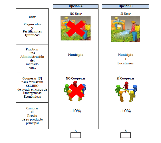 We explore farmers’ preferences for two specific collaborative arrangements. The first arrangement is described as the possibility that the municipal government provides management support to farmers. The second arrangement is described as an insurance scheme shared by farmers. Our interest in these specific collaborative arrangements stems from their potential to tackle economics of scale in the Mexican context -keep in mind that 54% of agricultural units are smaller than five hectares (INEGI, 2019).