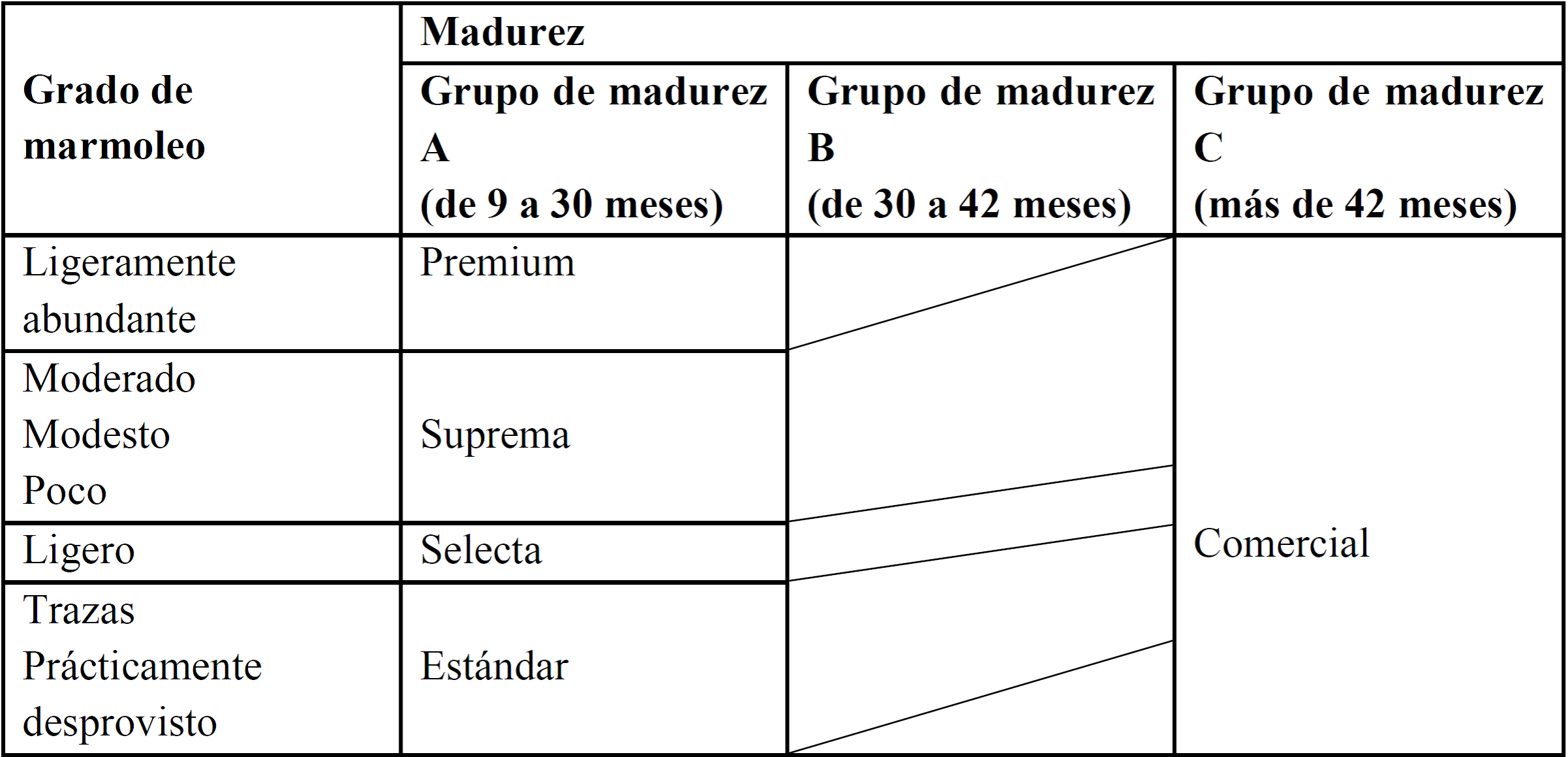| Grupo | Suprema | Selecto | Estándar | Comercial | ||||