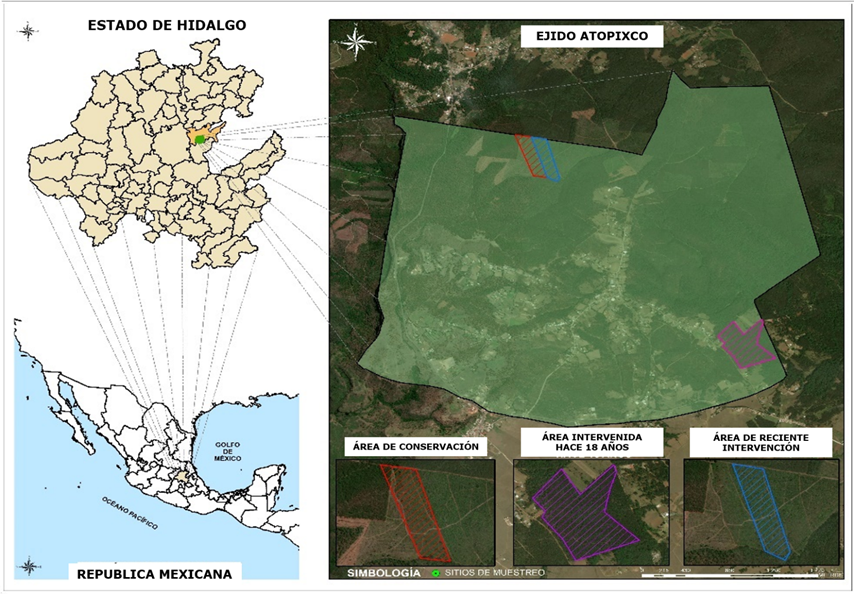 El área de estudio se localiza en la sierra alta del estado de Hidalgo, entre las coordenadas geográficas 20⁰36’11’’ latitud Norte y 98⁰36’28’’ longitud Oeste, con altitud de 2 048 msnm (Figura 1).