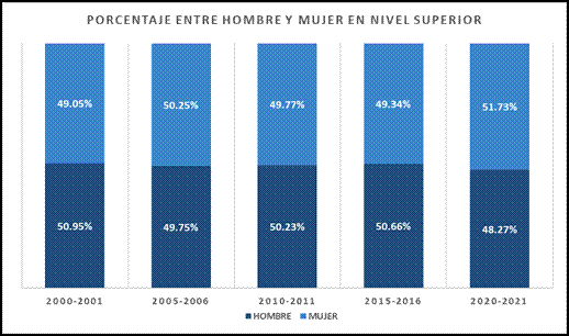 Figura 6 Matricula de hombres y mujeres en nivel superior por ciclo escolar