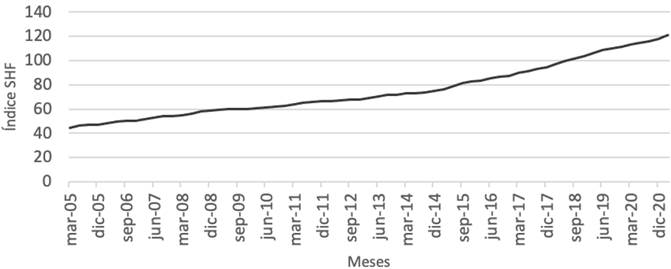 Fuente: Elaboración propia con información de la SHF (2021). Datos valor base 2008.