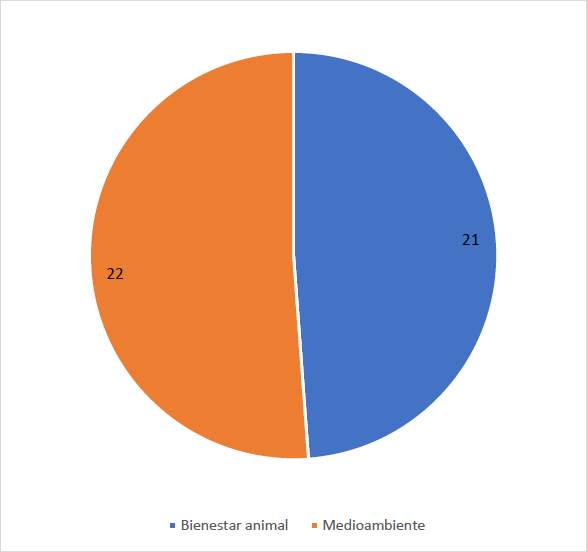 Las alusiones al veganismo/vegetarianismo y su relación con el cuidado del medioambiente y el bienestar animal quedan prácticamente empatadas entre sí.