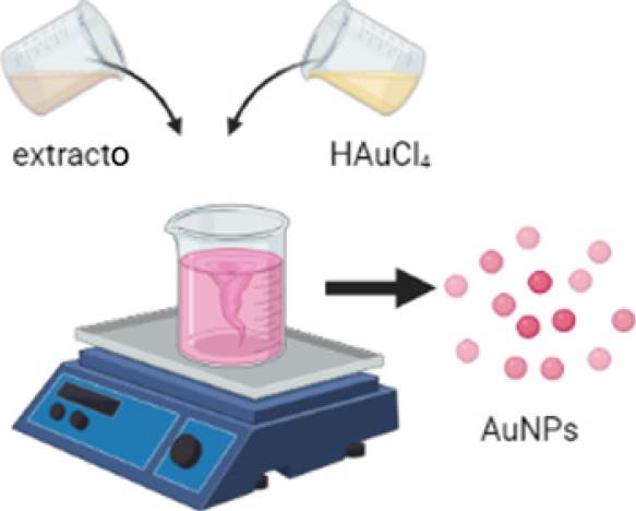 La sal precursora fue ácido cloroaúrico de grado analítico (HAuCl4∙3H2O, 99, 995% de base metálica) adquirida de Sigma-Aldrich. Para la preparación del buffer de Sorensen, se mezcló una proporción adecuada para obtener una solución de pH 7 de dihidrógeno fosfato de sodio (NaH2PO4, reactivo ACS, < 99%) y fosfato de sodio (Na2HPO4, reactivo ACS) 0.2 M. Los reactivos se adquirieron de Macron Fine Chemicals TM. Además, para la determinación electroquímica, se adquirió cloruro de mercurio (II) (reactivo ACS, > 99.5%) de Sigma Aldrich. Todos los extractos, soluciones y diluciones fueron preparados con agua desionizada.